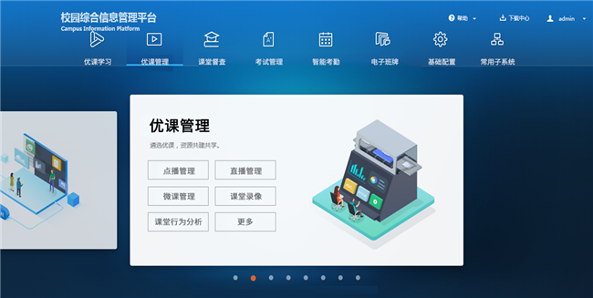 綜合信息管理:教學(xué)巡課、教學(xué)督導(dǎo)、教學(xué)評(píng)估、智能簽到、考試管理、電子班牌、錄播教室等功能。